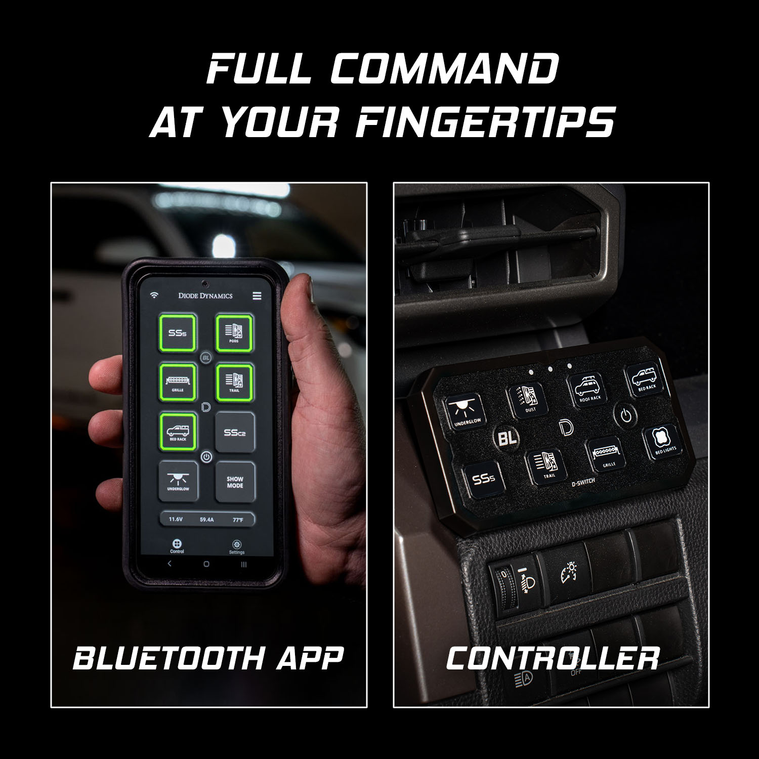 Upgrade your vehicles setup with the Diode Dynamics D-Switch! This advanced 8-channel switch panel gives you full control over any 12V accessory with four 30A and four 15A outputs, delivering serious power with unrivaled customization.